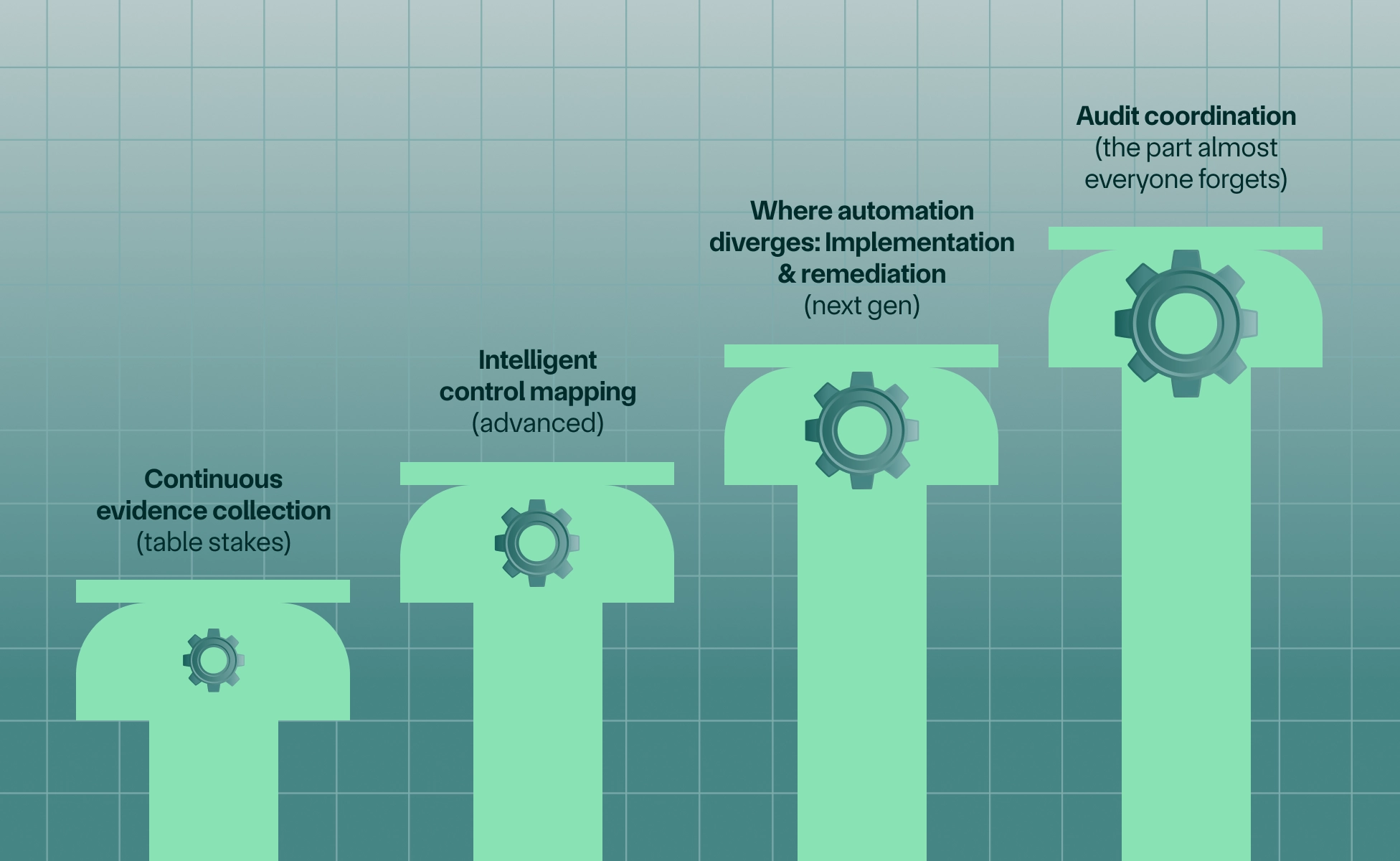 Most platforms won't tell you upfront which tier they occupy. They'll use the same language ("automated compliance," "AI-powered," "audit-ready in weeks") regardless of whether they're handling 20% of your work or 90%. So let's break down exactly what each tier does, and more importantly, what it doesn't.